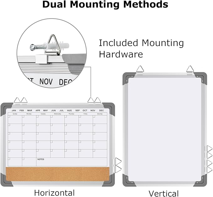 EAONE 16x12 in Double Side Whiteboard Calendar & Cork Board Combo for Wall, 3 in 1 Magnetic Dry Erase Whiteboard Monthly Calendar and Bulletin Board with Aluminum Frame for Home Office Kitchen