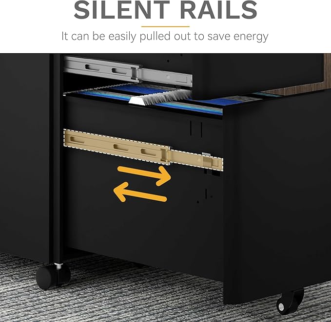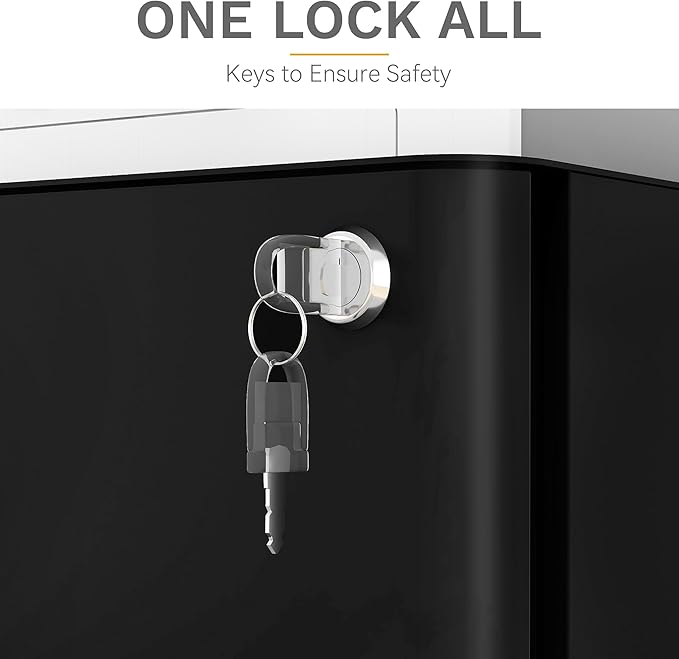 - Effortless Mobility with Wheels: Featuring 5 wheels in total, icluding 4 swivel casters (two of which are lockable) and an anti-tip central caster, this lockable filing cabinet offers easy and secure movement; Multi-directional swivel casters allow for smooth, 360-degree movement with minimal effort