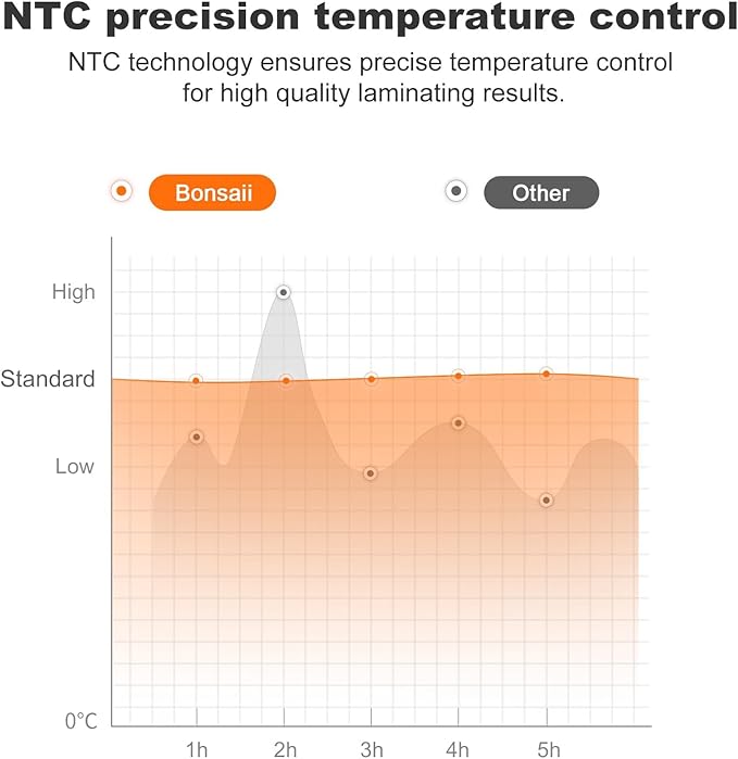 - 【100% Never Jam】 Paper jams are a common issue with laminate machines. The Bonsaii Home laminator features patented anti-jam technology that effectively prevents jams, safeguarding your items and ensuring optimal protection.