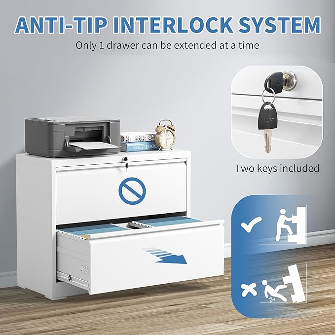 - 【Enhanced Safety Features】 To prevent tipping hazards, FLIXELIO 2 drawer file cabinet with lock includes a built-in anti-tip mechanism that allows only one drawer to open at a time. This thoughtful design minimizes safety risks and ensures stability, even when multiple drawers are in use.