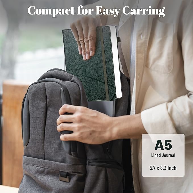 - ๐๐๐ ๐๐ง ๐๐๐๐ญ๐ก๐๐ซ ๐๐จ๐ฎ๐ง๐ ๐๐จ๐ฎ๐ซ๐ง๐๐ฅ:The cover features a tree growth ring pattern, lightly debossed onto cruelty-free vegan leather. The textured cover adds visual interest and sets it apart from plain designs. The tree ring pattern represents personal growth, accomplishments, and the challenges along the way. 5.7 ร 8.3 inches, compact and easy to carry