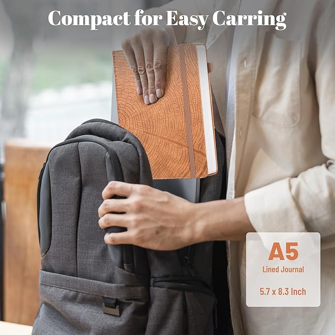 - ๐๐๐ ๐๐ง ๐๐๐๐ญ๐ก๐๐ซ ๐๐จ๐ฎ๐ง๐ ๐๐จ๐ฎ๐ซ๐ง๐๐ฅ:The cover features a tree growth ring pattern, lightly debossed onto cruelty-free vegan leather. The textured cover adds visual interest and sets it apart from plain designs. The tree ring pattern represents personal growth, accomplishments, and the challenges along the way. 5.7 ร 8.3 inches, compact and easy to carry