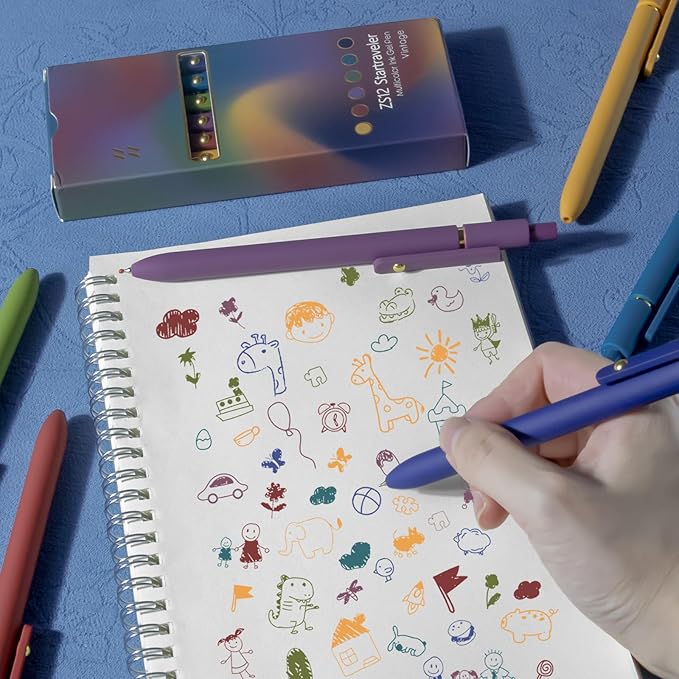 - Vintage Colored Gel Pens: You can get 6 new colored pens filled with 6 different colors of ink which turns note-taking, planning, drawing and journaling session into a fun and colorful event. They will add a touch of personality to your work or school