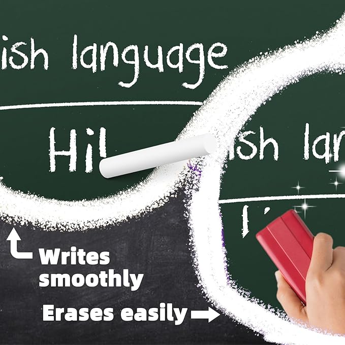 - Easy Write & Erase: The chalk write clearly on a variety of surfaces, including blackboards, whiteboards, kraft paper, sidewalk, ground, ensuring smooth writing and easy cleaning.