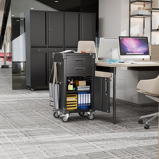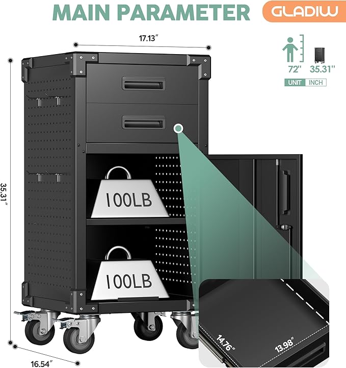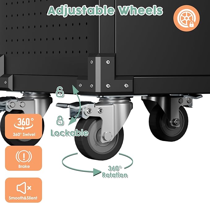- [MOBILITY AND CONVENIENCE] The four lockable wheels provide unparalleled mobility, allowing you to easily move the garage storage cabinet around the workspace. Whether you need to access tools in different areas or rearrange your workspace, the wheels make it effortless. The locking mechanism ensures stability when the cabinet needs to be stationary, preventing it from moving unexpectedly.