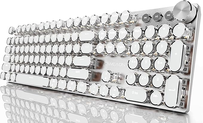 EWEADN Typewriter Style Mechanical Gaming Keyboard, Wired Mechanical Keyboards,104 Keys Backlit LED Keyboards, Media Control Knob, Wired Computer Keyboard Pink Switch for Windows/Mac/PC-White