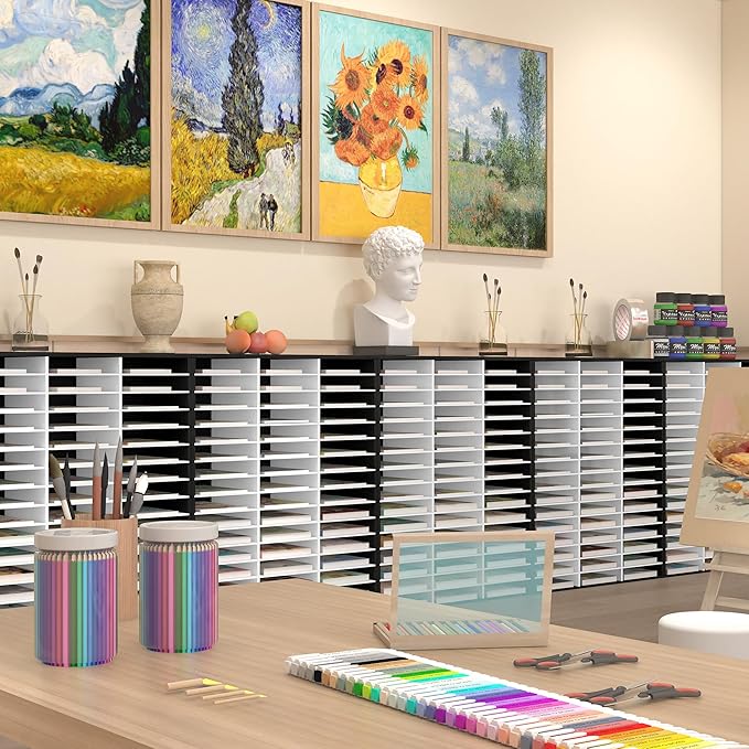 - 48-Compartment Mail Sorter Organizer: Organize 500+ sheets per slot in this industrial-grade classroom mailbox. With 48 compartments (12 x 9 x 2.1 inch eash slots), store comics, magazines, and travel brochures effortlessly. EPA-certified particleboard ensures long-term durability for office/classroom use.