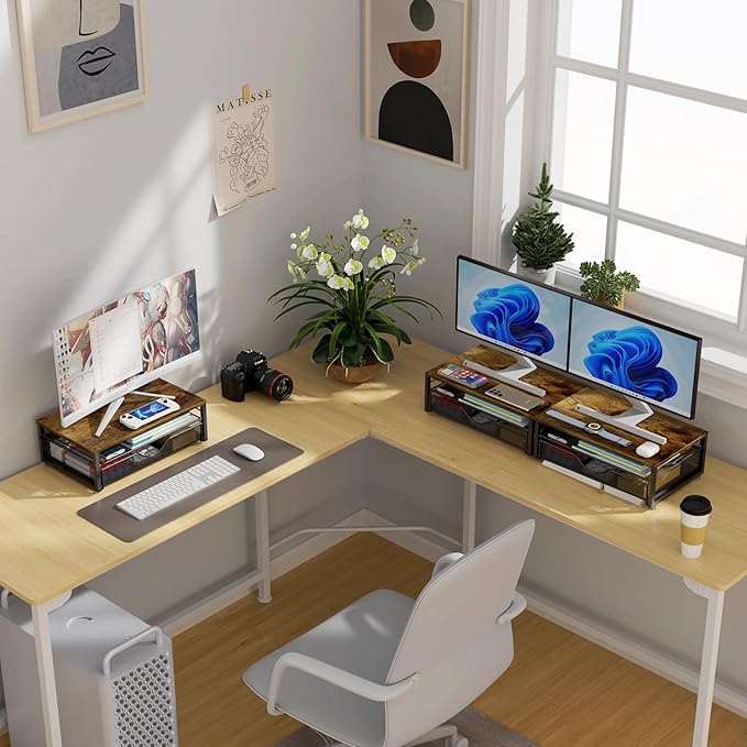 - 【50+ lbs Heavy-Duty Stability】: It features a reinforced steel frame with crossbars and wooden panels, ensuring the monitor stand remains stable without any wobbling. The non-slip pads not only maintain stability but also prevent scratches on your desk. It has been weight-tested for all-day reliability.