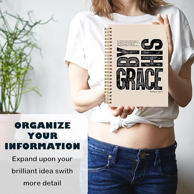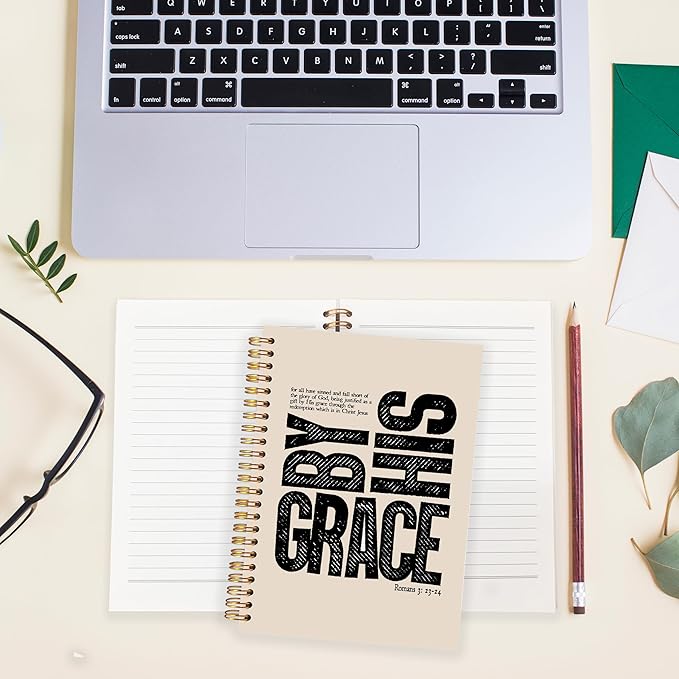 BearCake Christian Notebook Journal, Christian Gifts for Women, By His Grace Scripture Prayer Journal for Women, Bible Journaling Neutral Hardcover Spiral Notebook 5.5x8.3