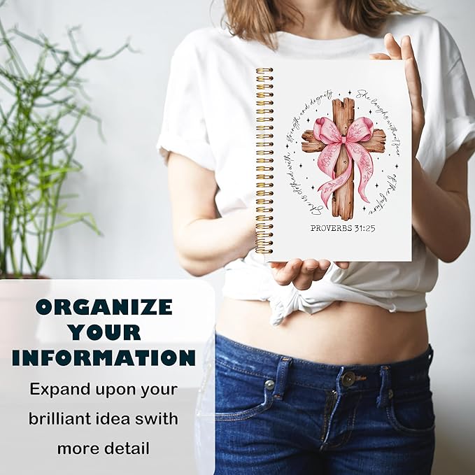 BearCake Proverbs 31 Woman Christian Notebook Journal, Preppy Christian Gifts for Women, Pink Coquette Bow Prayer Journal for Women, Bible Journaling Hardcover Spiral Notebook 5.5x8.3