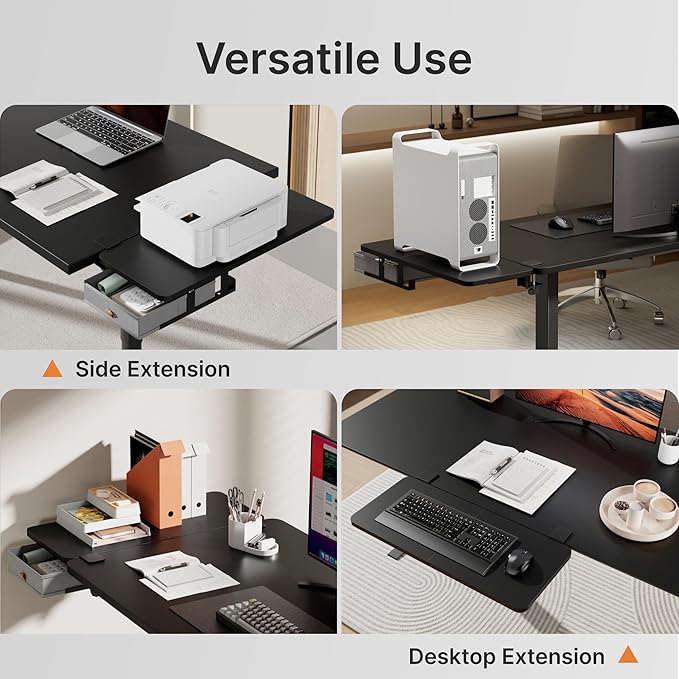 - HEAVY-DUTY DESIGN WITH EXCEPTIONAL LOAD CAPACITY: Constructed from premium materials, this 10.3-pound desk extender features an impressive load capacity of up to 55 lbs.The sturdy construction ensures long-lasting durability, while the rounded-edge design ensures safety by preventing accidental scratches or bumps, combining reliability with user safety for everyday use.