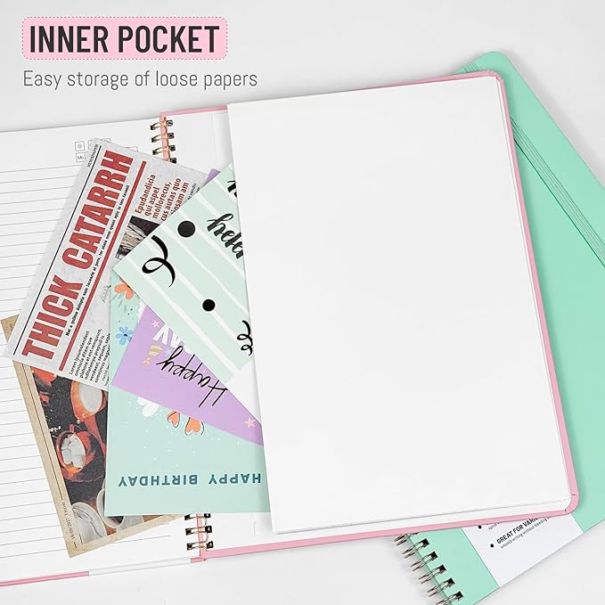 - This notebook comes with an elastic closure band and a pocket on the back cover for storage. Each page has a Date for easy date tracking.
