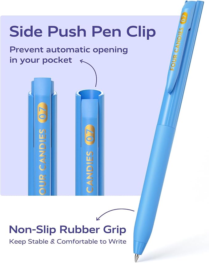 - QUICK DRYING PENS: Say goodbye to smudges with Four Candies fast-drying 0.7mm pens colorful. The smooth ink flow ensures a seamless writing experience, while the quick-drying ink prevents smudgingβideal for left-handed writers who often face this issue. Note: The sealing wax needs to be removed before writing