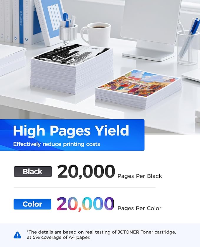- The latest chip version: The JCTONER toner cartridges are equipped with the latest version of built-in chips, ensuring perfect compatibility between each toner cartridge and the printer. This enables you to print efficiently while maintaining stability and reliability, making installation convenient without the need for manual adjustments. All JCTONER toner cartridges have undergone strict quality testing and have obtained ISO9001 certification. High-quality toner cartridges can meet the demand for high printing volume. The fine toner ensures clear and stain-free printing results and extends the lifespan of the printer. You can purchase with confidence.