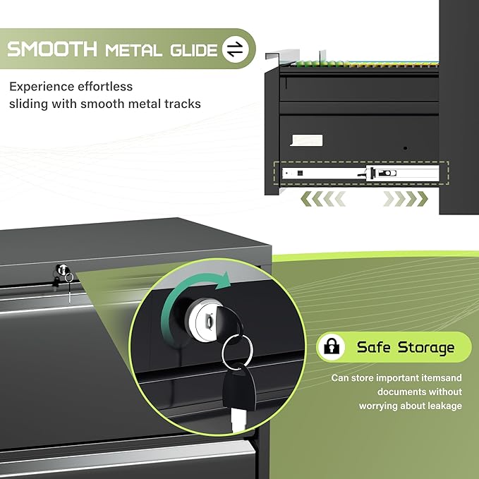 - 【High security】Two-drawer file cabinet with Lock is equipped with a built-in interlocking system to ensure drawer security. One locks with two keys ensures that your files are safe and easy to manage. The cabinet with drawers can be locked into two drawers at the same time with a lock, which is smooth and easy to operate.