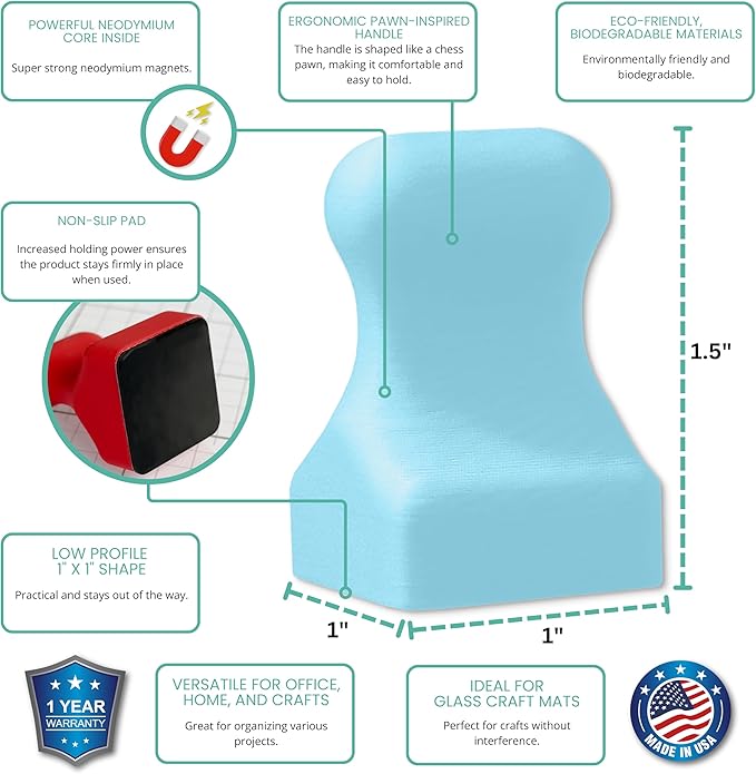 Glassboard Studio MiniPawn Magnet - Strong Neodymium Rare Earth Magnets for Fridge, Whiteboard, Locker & Magnetic Glassboards - Crafting & Office Use - Strong Fridge Magnets (Multicolor, Pawn, 12)