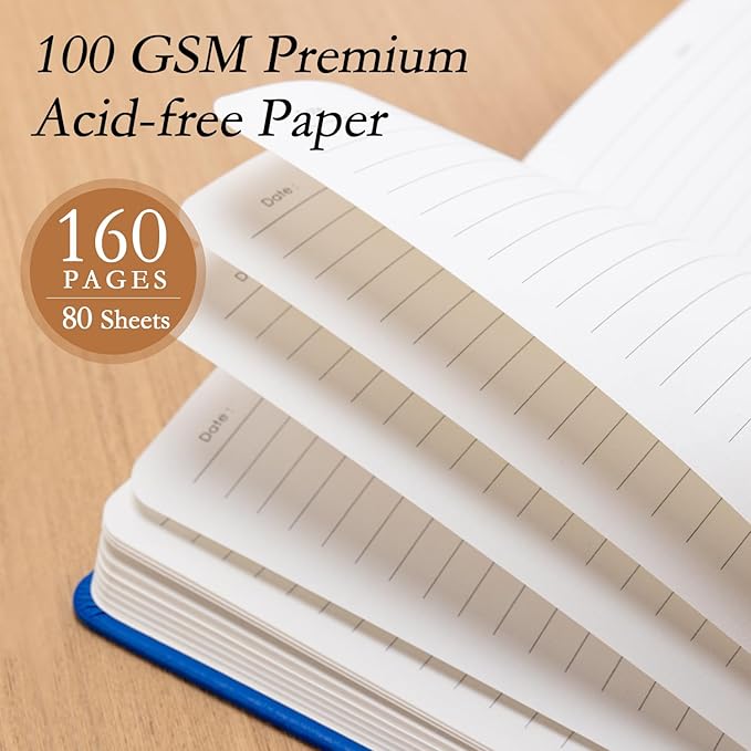 - FSC-certified eco-friendly paper: 100GSM acid-free thick paper prevents ink bleed-through, compatible with various pens (e.g., fountain pens, ballpoint pens). Light ivory-colored pages reduce eye strain for comfortable extended writing.