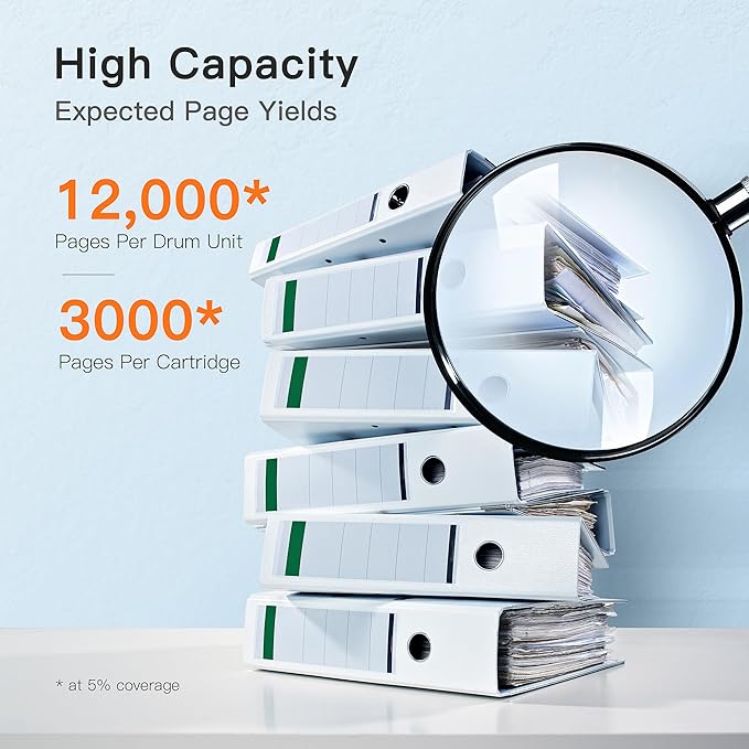 - Page Yield: 3000 pages per TN760 toner cartridge, 12000 pages per drum unit (based at 5% coverage)