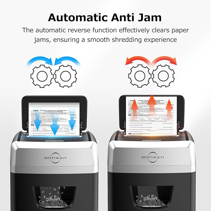 BONSEN 150-Sheet Autofeed Paper Shredder for Office, 60 Mins Heavy Duty Micro-Cut Shredders for Home Office Use, P-4 High Security Commercial Document Shredder with 6 Gal Large Capacity Bin (S3114)