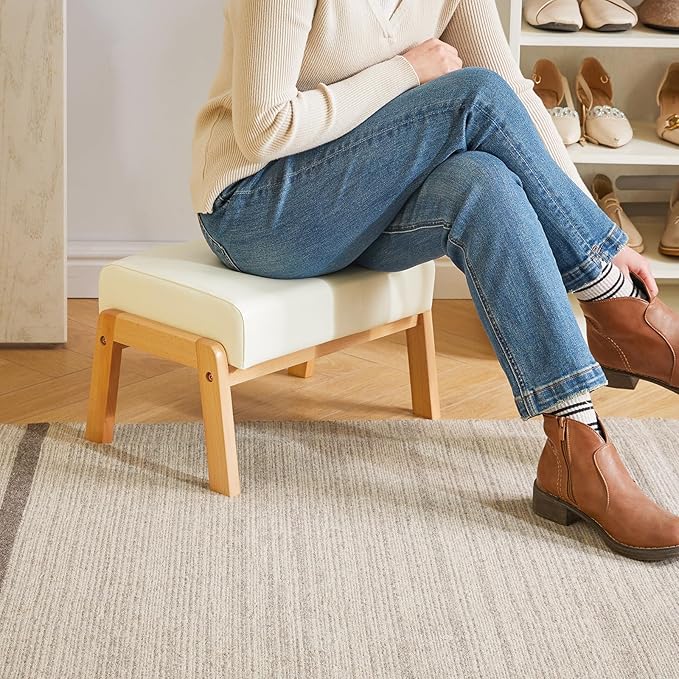 - Soft and Comfortable: The rectangle footstool ottoman is covered with soft and sturdy faux PU leather and filled with thick sponge. It is great for resting your feet, which helps to elevate your feet, reduce pressure on your ankles and prevent swelling. With the soft foot rest stool, you can enjoy your leisure time more cozy and comfortable.