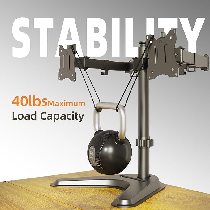 Claiks Dual Monitor Mount, Ergonomic Adjustable Monitor Arm for Max 32 inch Screens, Adjustable Computer Monitor Stand up to 40 lbs, VESA Mounting Holes 75&100mm, Black