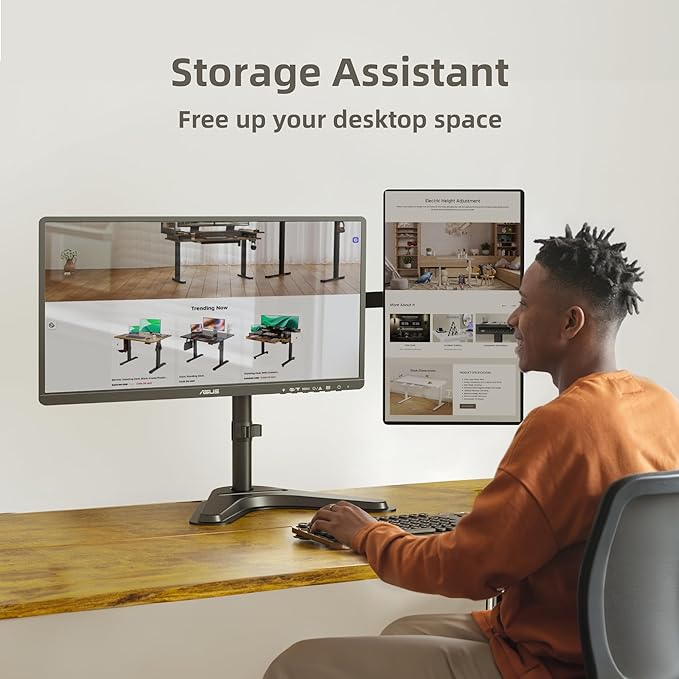 - Full Motion Adjustment: This monitor stand offers multi adjustability with +90Β°/-90Β° swivel, and +45Β°/-45Β° tilt. These features allow for optimal screen positioning to enhance workspace organization and efficient use of desk space.