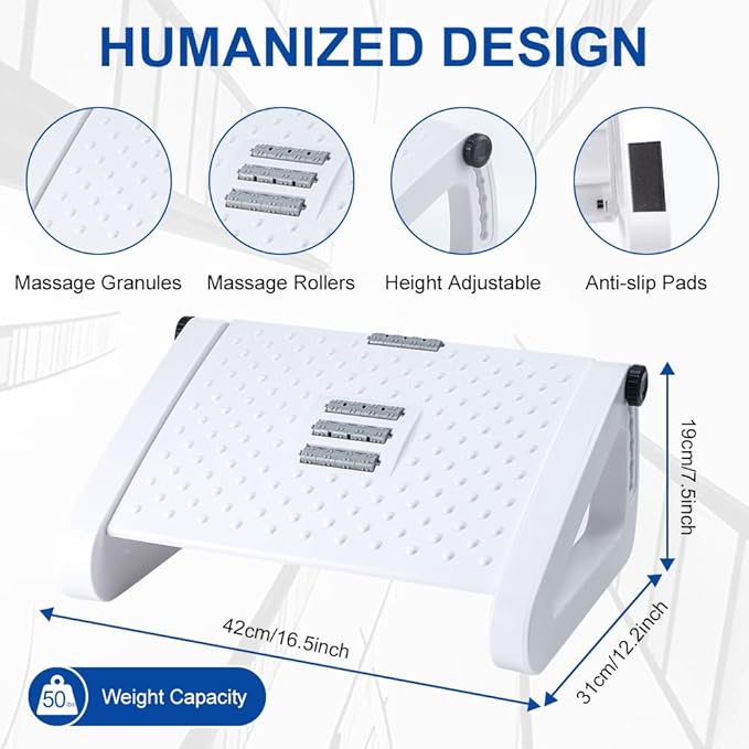 - Under Desk Foot Massager: The panel of our office chair foot rest has rows of massage particles and four small massage rollers. Massage the soles of your feet, promote blood circulation, relax the nerves to relieve your work pressure.