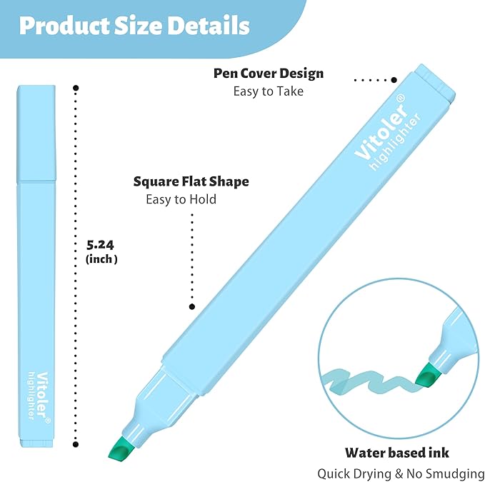 - Easy to Hold: The pastel highlighter is designed with square shape,it’s comfortable and easy to hold, without a sore hand and don't roll around while using.