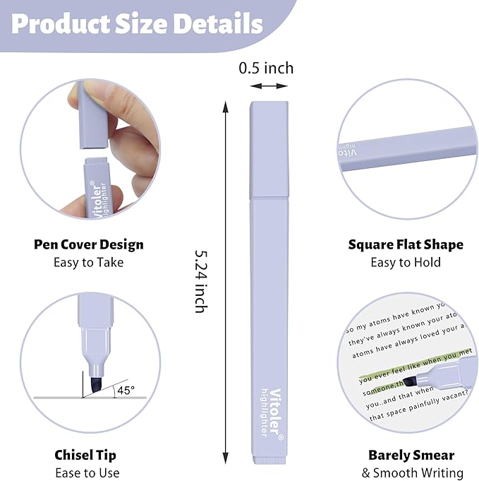 - Easy to Hold: The pastel highlighter is designed with square shape,it’s comfortable and easy to hold, without a sore hand and don't roll around while using.