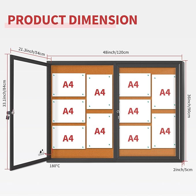 - Stylish Functionality: Elevate your communication efforts with our sleek enclosed bulletin board. Whether showcasing important notices, upcoming events, or achievements, its visually appealing design captures attention while ensuring effective information dissemination in a sophisticated manner.