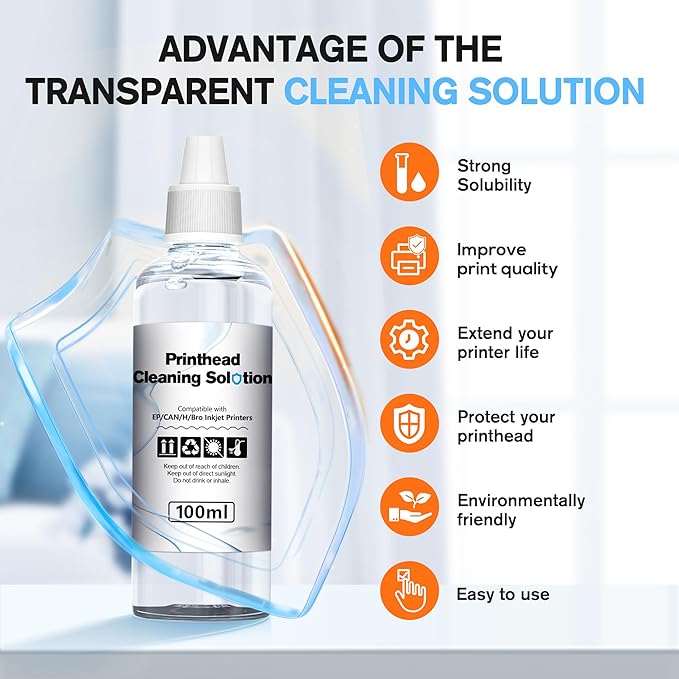 E-Z Ink Printer Cleaning Kit for Epson Ecotank Printer, Printerhead Cleaning kit for HP/Canon/Brother Inkjet Printers, Printhead Cleaning Solution, 100ML