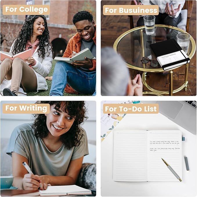 - Minimalist& Aesthetic Journal: leather journal, elastic band, pen loop, 320 pages of 100gsm lined paper. Perfect for work notes, idea mapping, “capture ideas on the fly”. Also for tracking beauty, emotions, travels, self-dialogue relaxation
