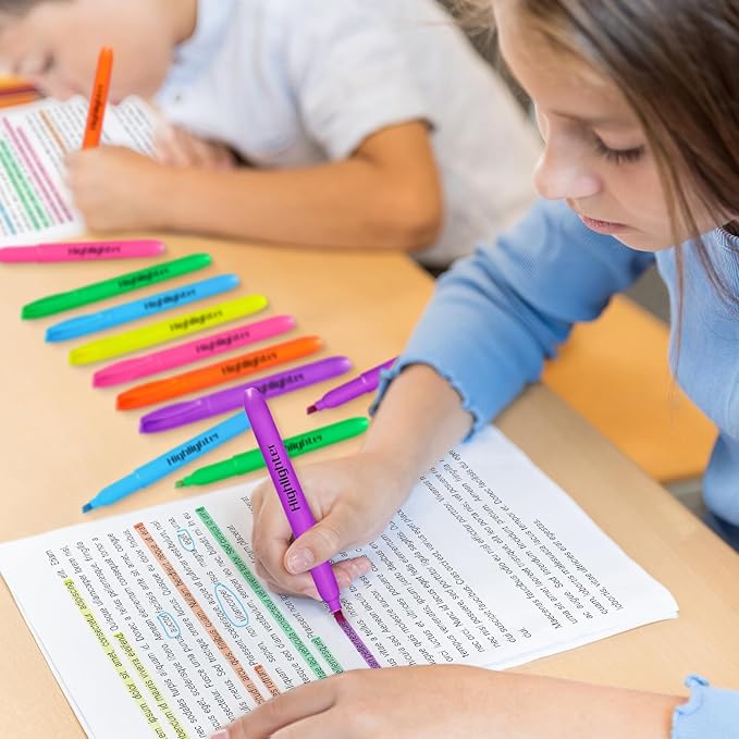 - Fast Drying & Durable: The highlighters pens use durable, quick-drying ink, allowing highlighted marks to be clearly visible without worrying about the ink staining your hands and books. Each highlighter is equipped with a pen cap to avoid ink from drying out for long-lasting use. Special Reminder; Remember to be sure after use keep the pen cap closed to prevent the ink from drying out