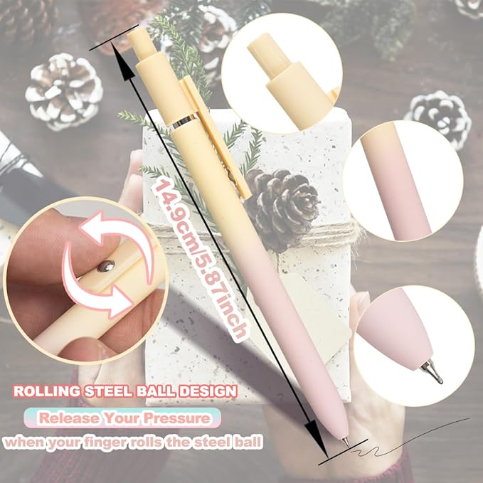 - Ergonomic Note-Taking Design-Featuring an ultra-slim barrel with super soft grip cushioning, these pens for note taking reduce hand fatigue during extended use. The rollable bead design releases your stress and allows you to focus on your thoughts,the weighted balance gives professional control - perfect for bullet journal grids or lecture notes Secure