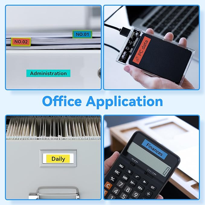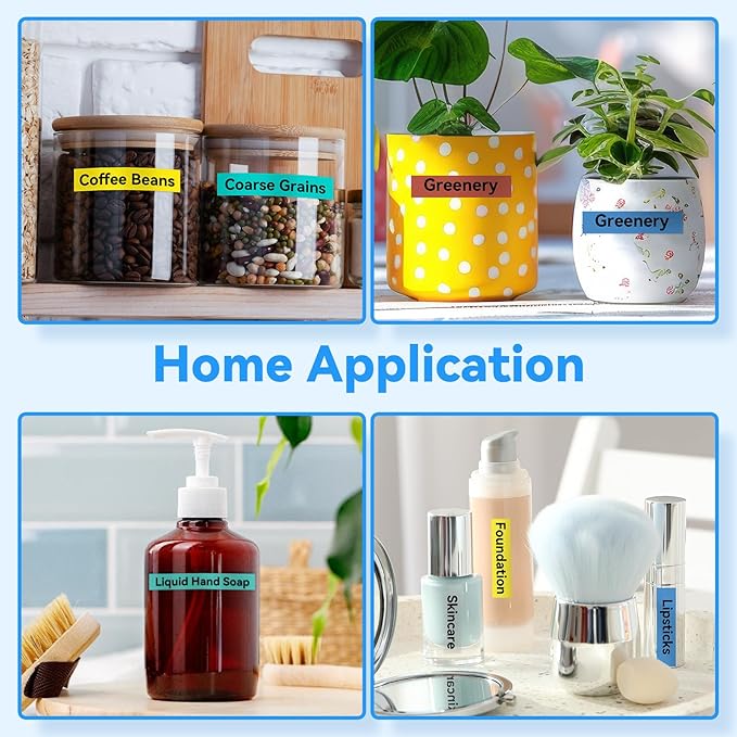 - 【Multi-Color Options】High-Contrast & Easy to Read✔ Choose from black on white, clear, yellow, red, green, blue tape for versatile labeling✔ Crisp black text – Sharp print quality for instant visibility