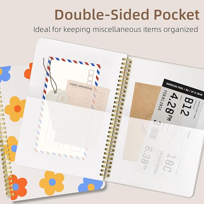 Cute Spiral Notebook journal B5 Aesthetic Pretty Design for Women Girls Kawaii with Pocket, 10 x 7.2 inch, Lined, Color Flowers