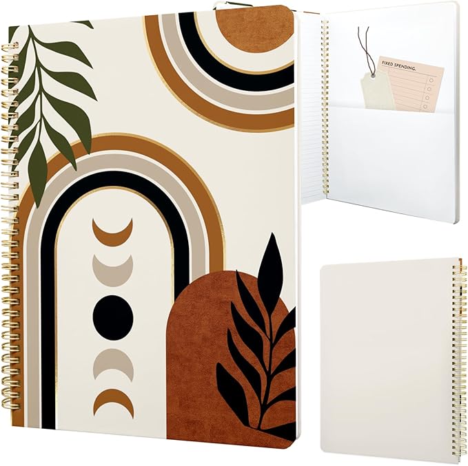 Cute Spiral Notebook journal A4 Aesthetic Pretty Design for Women Girls Kawaii with Pocket, 8.5 x 11 inch, Lined, Moon Boho