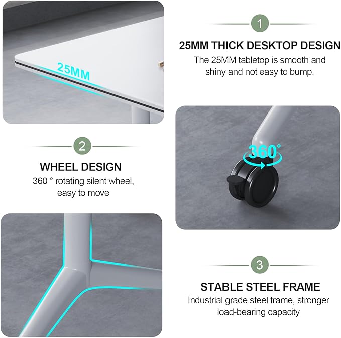 - 【Multifunctional Design】: This conference table is not only a table, but also a multifunctional piece of furniture. Training tables with wheels can also be used as desks, desks or dining tables. The spliced design allows you to easily connect multiple desks, which are simple and convenient to assemble, making it easy to create a larger workspace.