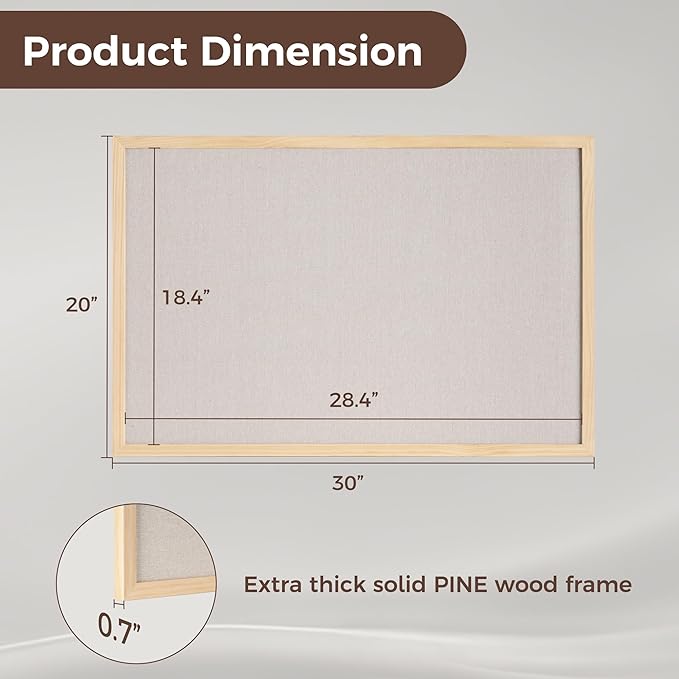 - Size: The bulletin board is 20x30 inch to provide more display space, we also provide thumbtacks, hooks and strings for you to display your favorite items.