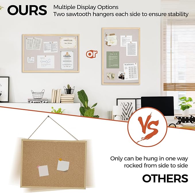 - Unique Design: Easily customize the board orientation to fit your space. Natural cork bulletin board add a classic look to your office or home. Both strong and stylish, it will be a great addition to your space.