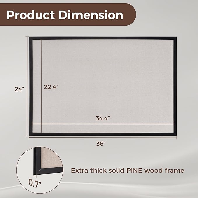 - Size: The bulletin board is 24x36 inch to provide more display space, we also provide thumbtacks, hooks and strings for you to display your favorite items.