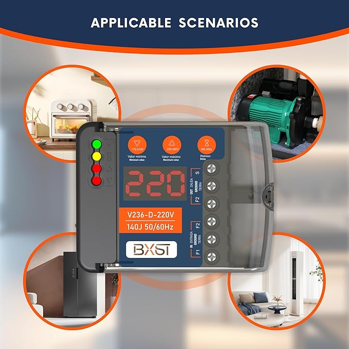 - Comprehensive Protection for Appliances: Protects a wide range of devices, including refrigerators, air conditioners, motors, pumps, and other household and office equipment, ensuring safe operation even in areas prone to power fluctuations.