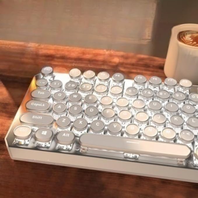 - 【Retro Typewriter Mechanical Keyboard】:The Retro Mechanical Keyboard offers a genuine typewriter typing experience with custom blue switches that provide satisfying and low resistance without a tactile bump feel. Keycaps have a matte texture and upgraded touch feel and the sound is quiet when the button is pressed lightly giving you a comfortable typing feeling and a stable click touch.