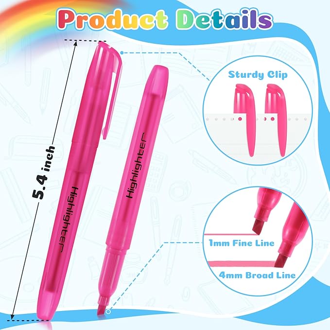 - Long-Lasting and Smudge-Free: The highlighters are designed to be used on a wide range of paper and won't penetrate typical paper, quickly dry and Leak-Proof. Remember to be sure after use keep the pen cap closed to prevent the ink from drying out.