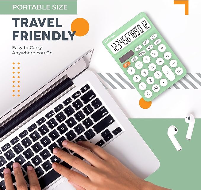 - 【Essential Cute Calculator for School and Study】The CATIGA 12-digit desk calculator is a cute calculator designed for students and daily users. Its lightweight, colorful build makes math tasks fun and easy. Perfect as a desktop calculator for school, home, or office, it delivers reliable performance with vibrant style.