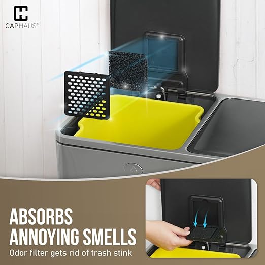 - Odor-Free Environment: Equipped with odor filters, our trash can prevents unpleasant smells and keeps both compartments fresh; this odor control technology enhances hygiene and creates a cleaner, more inviting atmosphere for your home or office