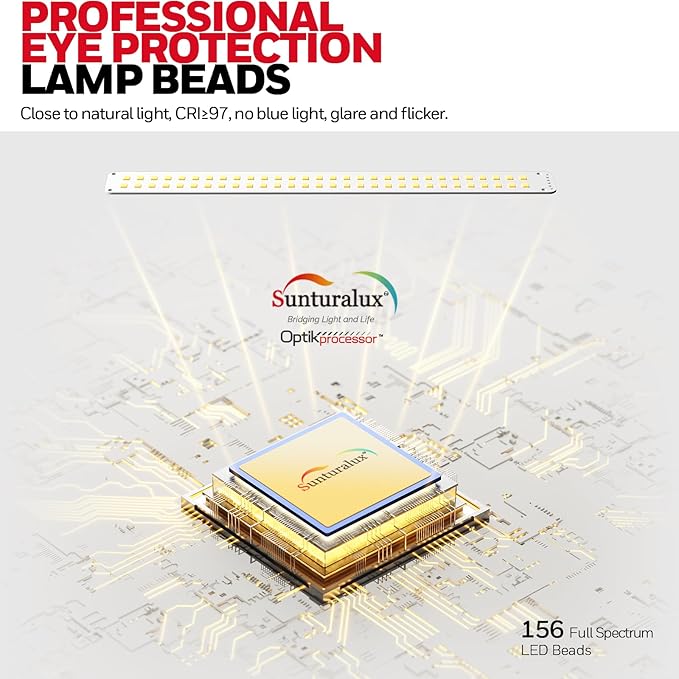 - [EYE-HEALTHY NATURAL LIGHT SIMULATION] The Honeywell LED clamp desk lamp features 156 Sunturalux chips delivering 1200LM of uniform lighting with exceptional ≥97 CRI. This flicker-free, glare-free illumination mimics natural sunlight to reduce eye strain during prolonged computer use. Ideal bright task lamp for architects, designers, and gamers, perfect for drafting tables, workbenches, and monitor setups
