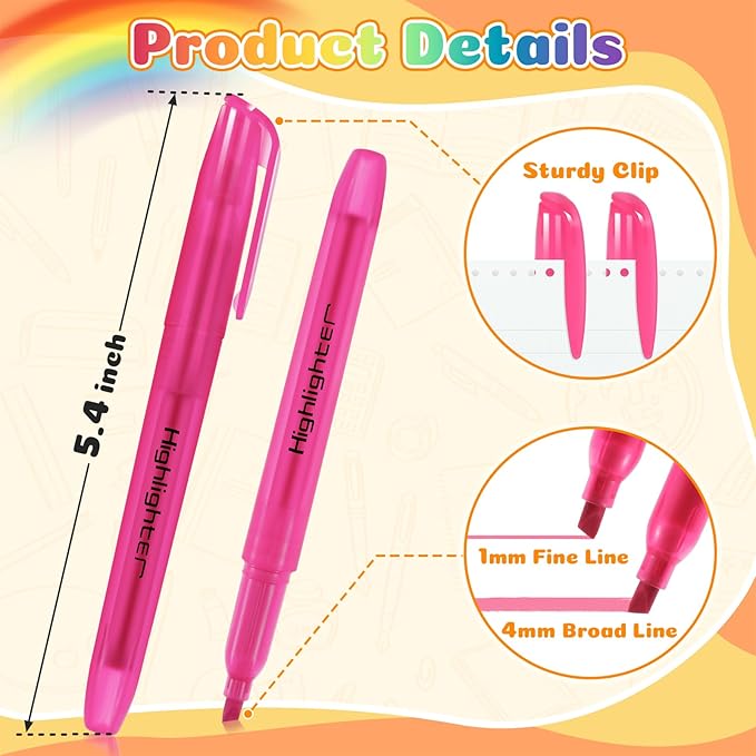 - Vibrant Highlighter Set: This 96-pack of multicolor highlighters includes six bright colors, making it easy to organize and categorize your notes while meeting all your highlighting needs.