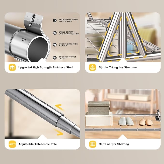 - 3-in-1 Design: This commercial clothing rack serves as a garment rack, shoe rack in one. Ideal for organizing clothes, drying laundry, or displaying items in a retail setting.