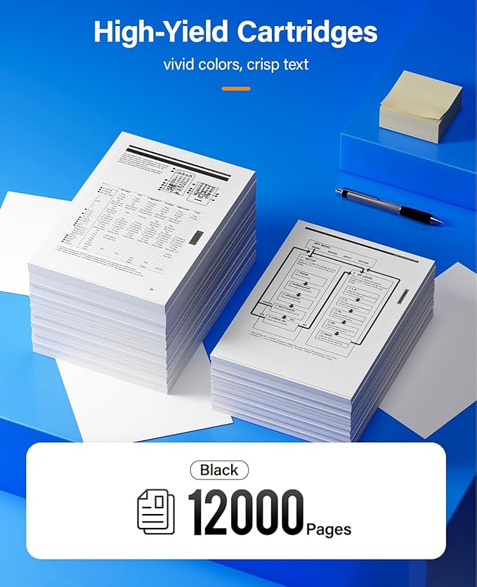 - High Yield Pages: 12,000 pages per black cartridge, up to 24,000 pages with 2 cartridges (A4, 5% coverage)